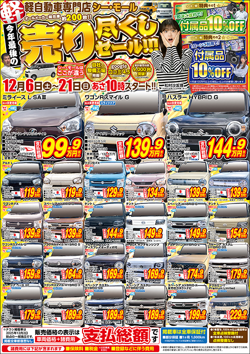 シーモールでは12月21日まで今年最後の売り尽くしセールを開催しております🎊